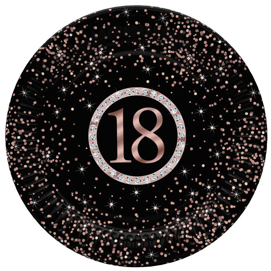 Happy Birthday 18 Rose Gold papírtányér 8 db-os 18 cm