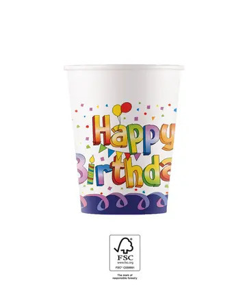 Happy Birthday Multicolor papír pohár 8 db-os 200 ml FSC