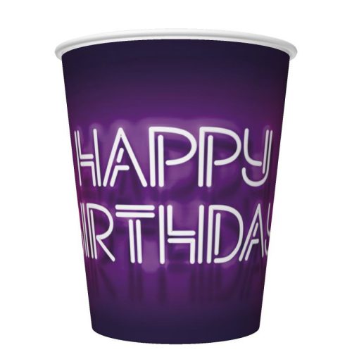 Happy Birthday Neon Cake papír pohár 8 db-os 250 ml