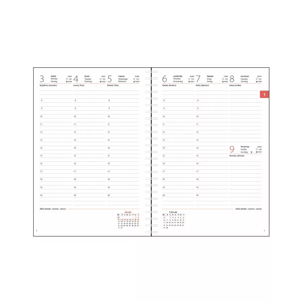 • Naptár beosztás: Heti (1 hét 2 oldalon)