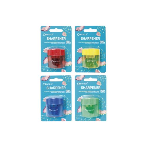 Hegyező 2 lyukú műanyag, tartályos Connect bliszteres