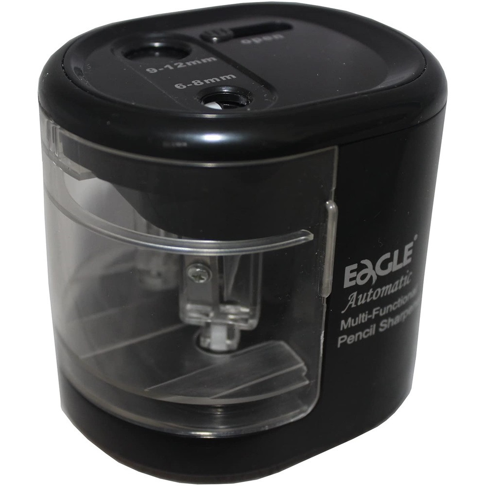 Ez az Eagle EG-5161 elektromos asztali ceruzahegyező különböző méretű ceruzákhoz készült – 6–8 mm és 9–12 mm átmérőjű ceruzákhoz is használható.