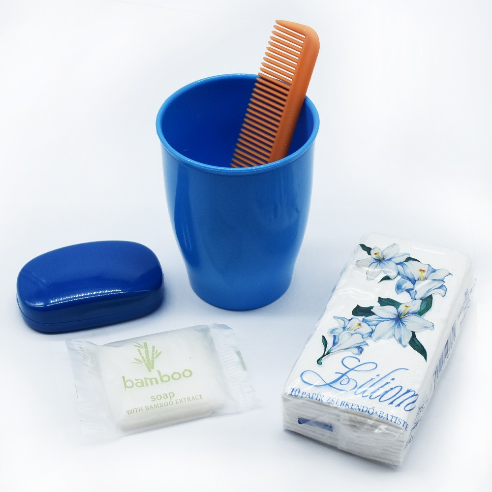 Tisztasági csomag összehúzható, zsinóros zsákban.
