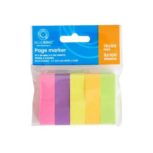 JELÖLŐCÍMKE PAPÍR 5X100LAP 15X50MM BLUERING