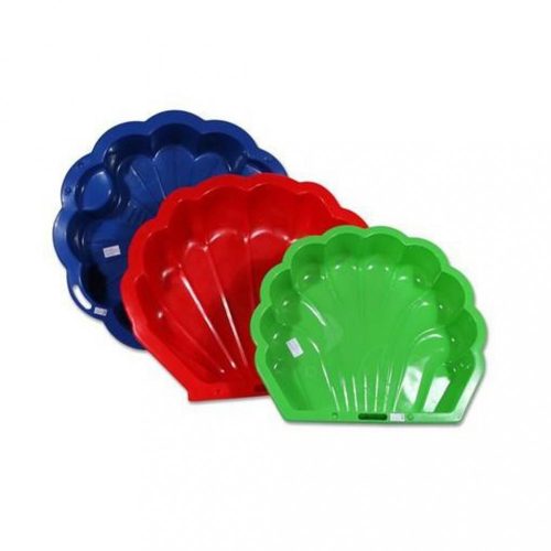 Kagyló formájú homokozó vagy pancsoló medence gyerekeknek. 109×78×18,5 cm méret, strapabíró műanyag kivitel. 2 db együtt fedélként is használható.