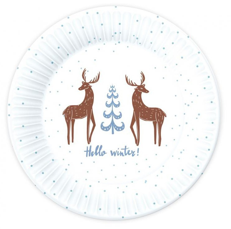 Karácsonyi Hello Winter White papírtányér 6 db-os 18 cm