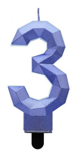 Kék 3-as Diamond Metallic számgyertya, tortagyertya