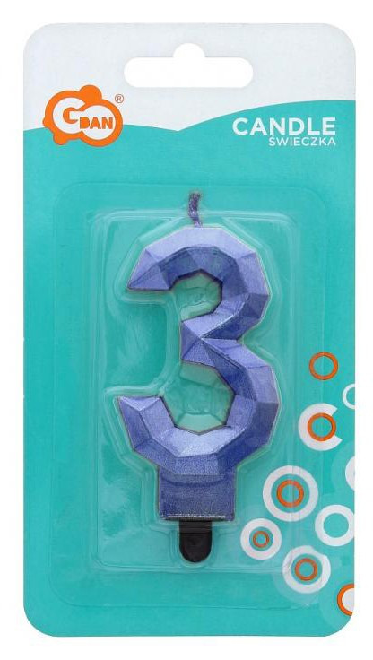 Diamond Blue Metallic, Kék számgyertya, tortagyertya 3-as