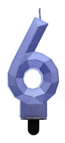 Kék 6-os Diamond Metallic számgyertya, tortagyertya