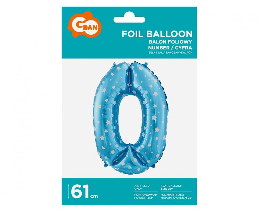 Blue with Stars, Kék 0-ás szám fólia lufi 61 cm