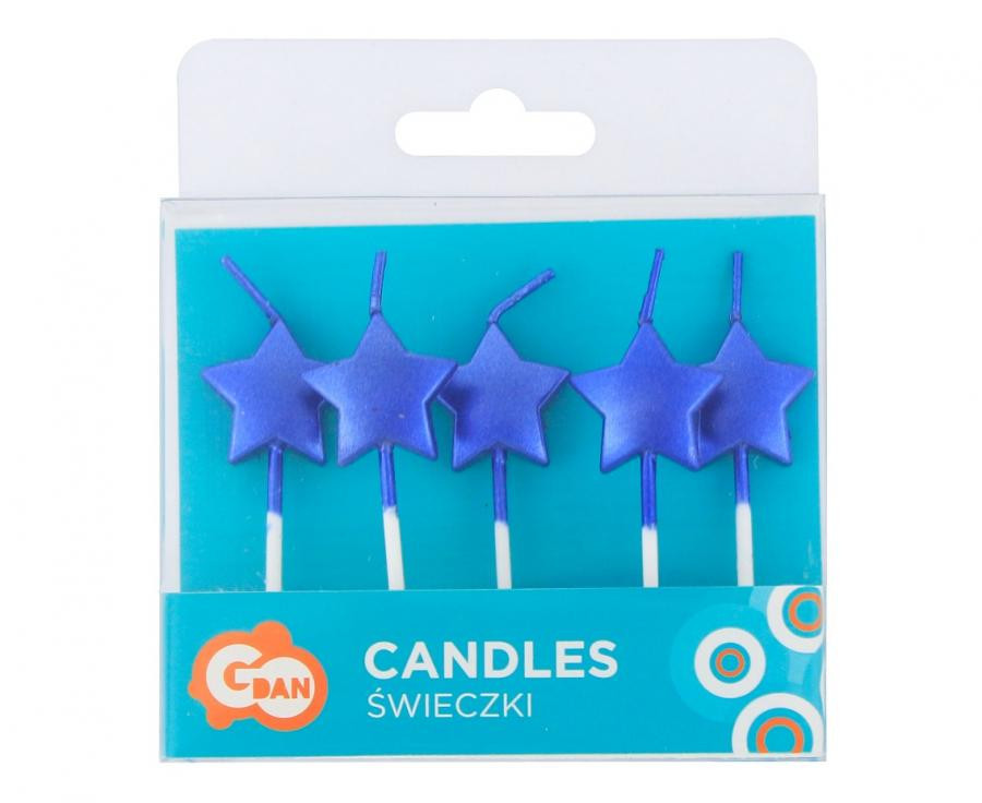 Kék csillag Metallic tortagyertya, gyertya szett 5 db-os