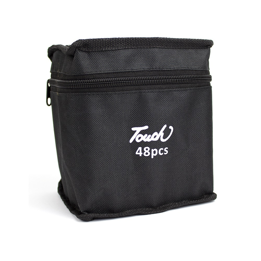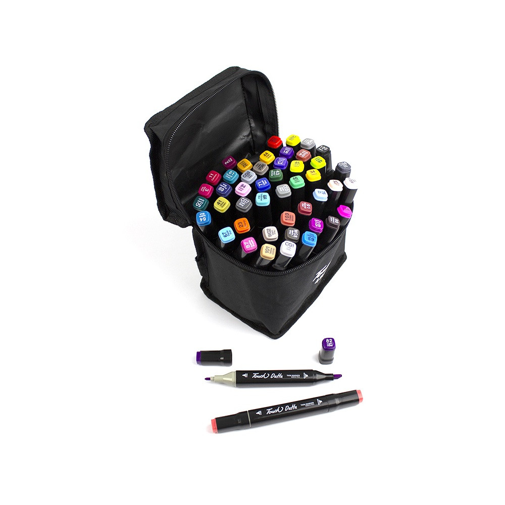 48 db kétvégű, alkoholos marker. Víz - és fakulásálló erősen pigmentált színek, melyek nem hagynak nyomot. Hegyvastagság: 3 mm és 6 mm. Vonalvastagság: 0,5 mm - 6 mm. A tok anyaga rugalmas, zipzárral és fogóval ellátott. Katalóguskód: 53955