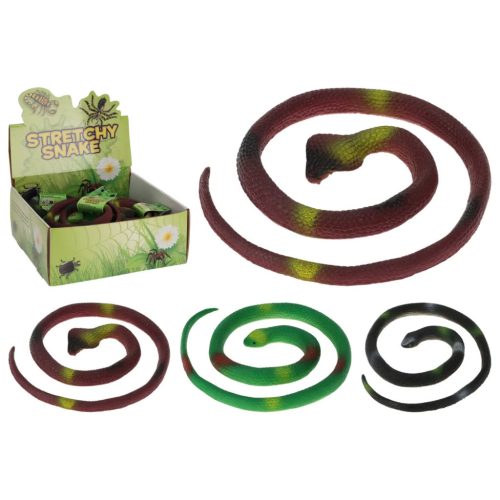 A kb. 65 cm hosszú kígyó rugalmas, nyújtható anyagból készült, így húzható, csavarható és formázható. A gyerekek imádják megnyújtani, majd nézni, ahogy visszanyeri eredeti formáját. Tökéletes játék viccelődéshez, szerepjátékhoz vagy akár egy kis tréfához a barátokkal.
