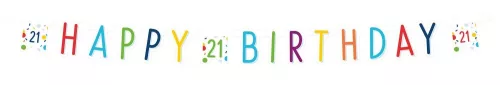 Konfettis Colorful Happy Birthday 21 felirat 180 cm