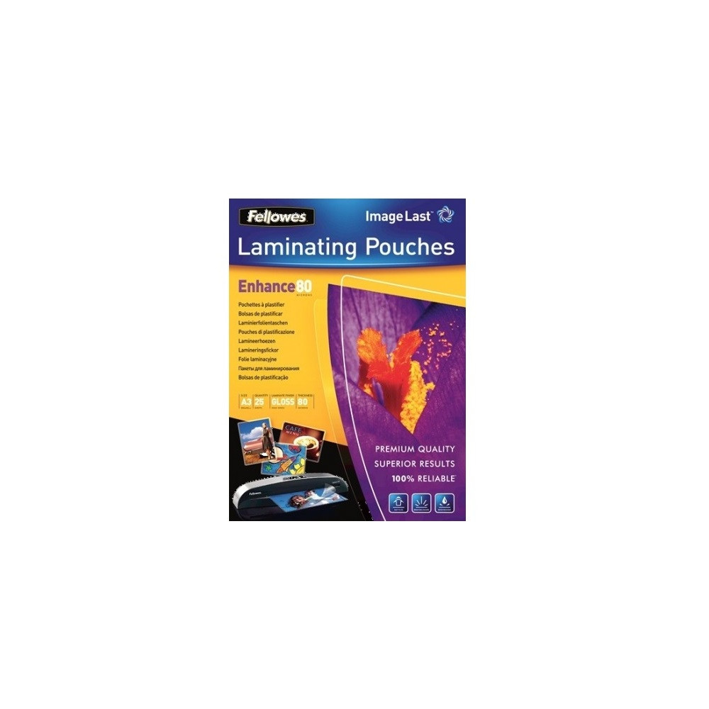 Lamináló fólia, A3, 80 mikron, fényes, 25 db/doboz, Fellowes®