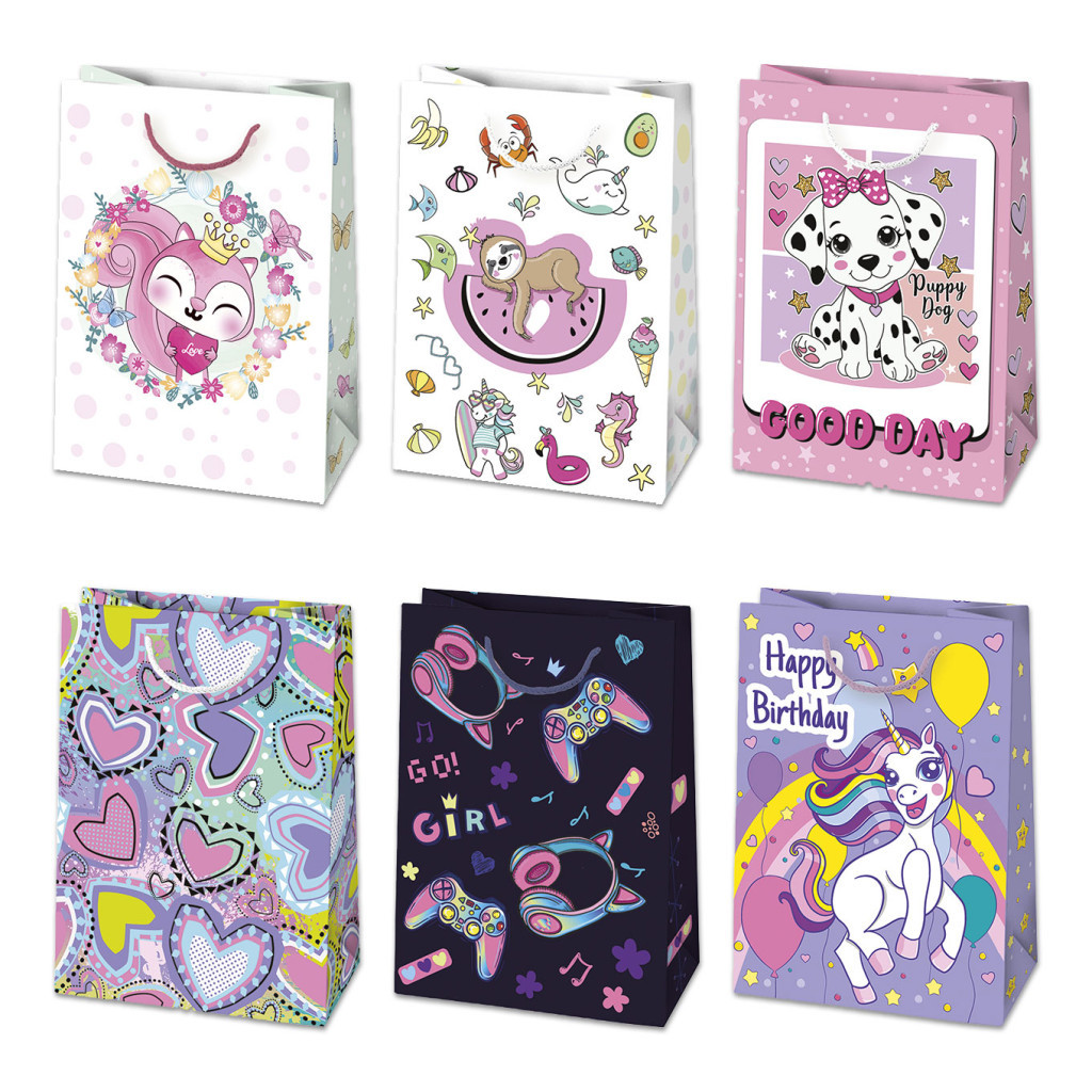 Lányos Colorful papír ajándéktasak, ajándékzacskó 23x32x11 cm