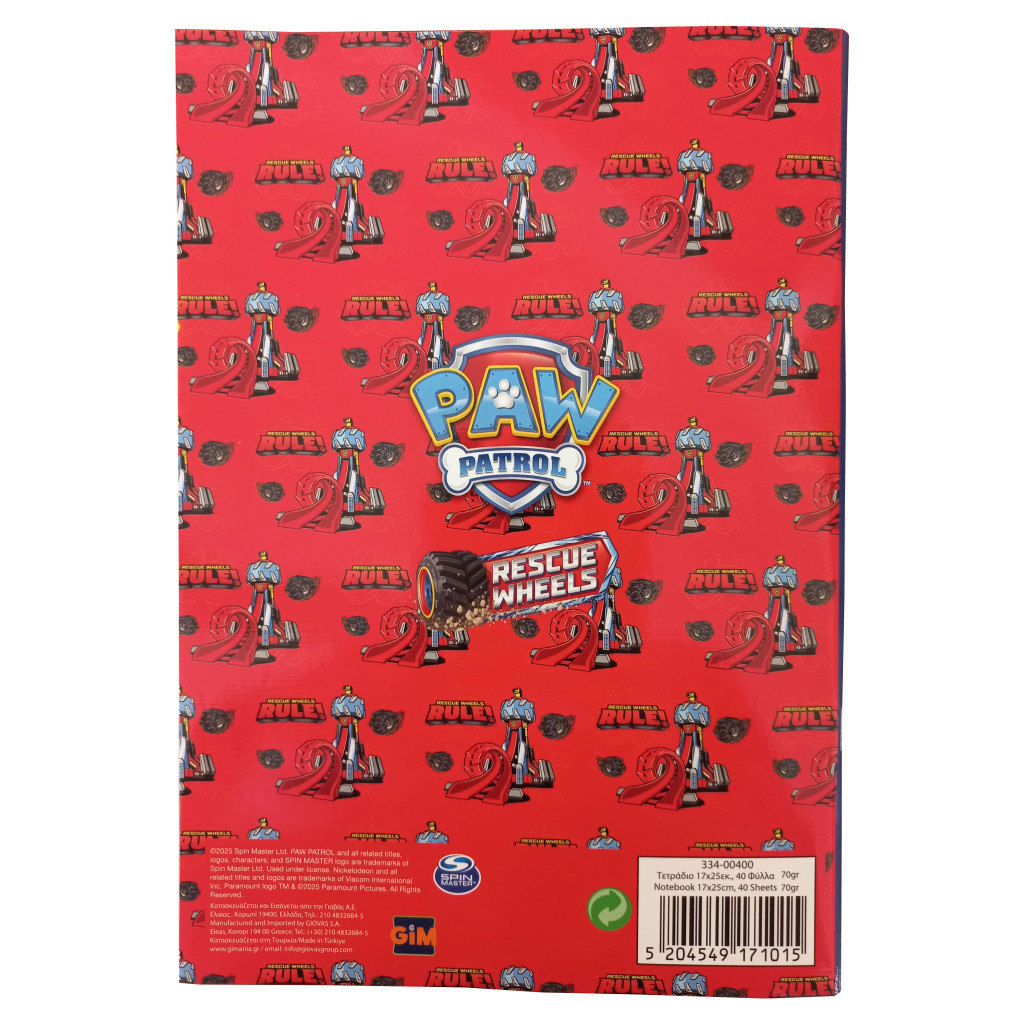 Mancs Őrjárat Rescue Wheels B/5 vonalas füzet 40 lapos