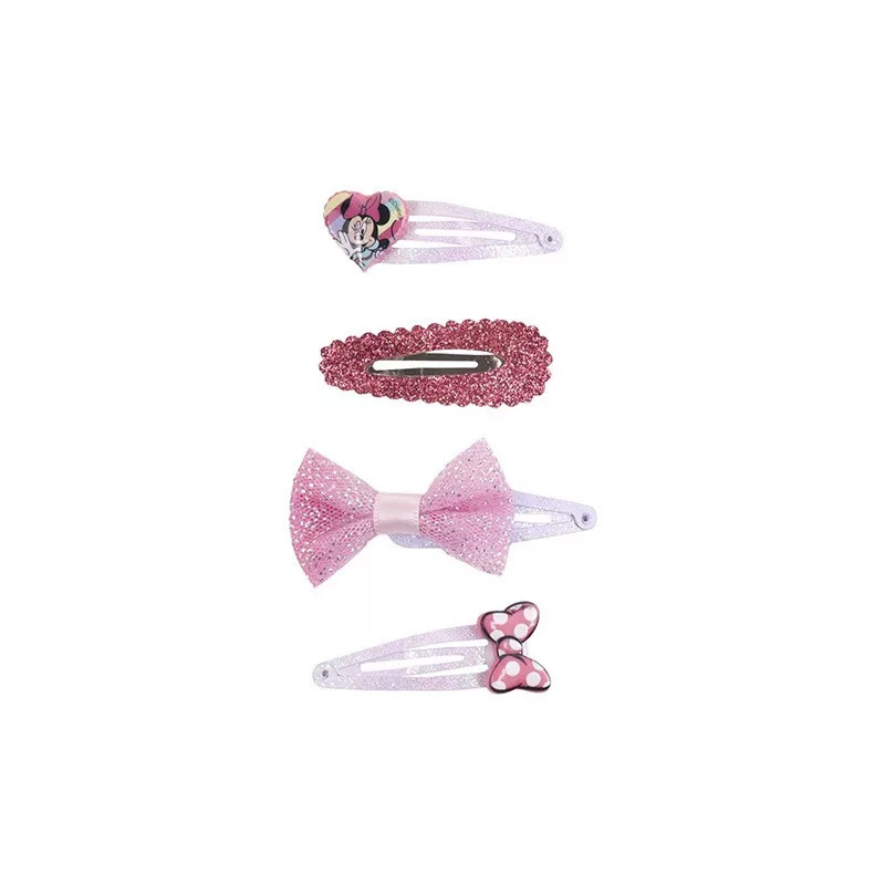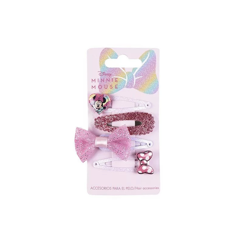 A Minnie egér mintás hajcsat szett tökéletes kiegészítő minden kis Minnie rajongó számára. A csomag 4 különböző, aranyos és csillogó hajcsatot tartalmaz, amelyek vidám megjelenést kölcsönöznek a frizurának. A masnis, csillámos és Minnie mintás hajcsatok ideálisak mindennapi viselethez, iskolába, óvodába vagy akár ünnepi alkalmakra is.