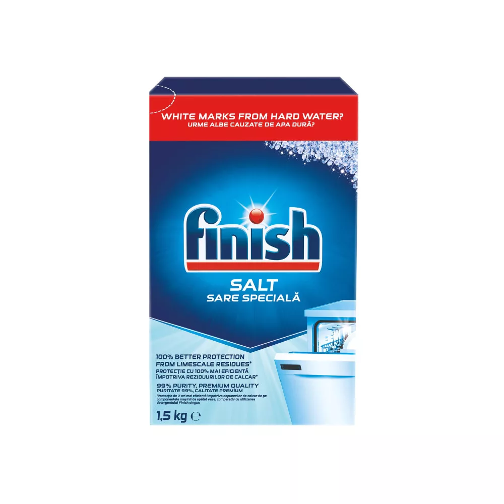 A Finish vízlágyító só a mosogatógépekhez kifejlesztett speciális só, mely természetes anyagokat tartalmaz és könnyen oldódik.