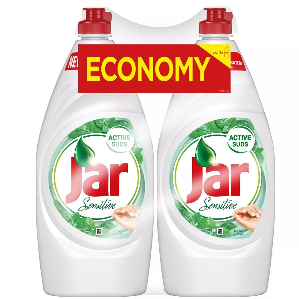A Jar Sensitive mosogatószer tisztító erejére minden mosogatás alkalmával számíthat! Minden cseppje sokáig elég, így még a spórolásban is segít! Legyen szó edényekről, poharakról, fazekakról vagy serpenyőkről, a Jar számára semmi sem jelent kihívást! A Jar Sensitive kíméletlenül bánik a zsírral, gyengéd a kézhez. 3-féle illatban, például kamilla és E-vitamin vagy teafa és menta, valamint különböző kiszerelésekben kapható.