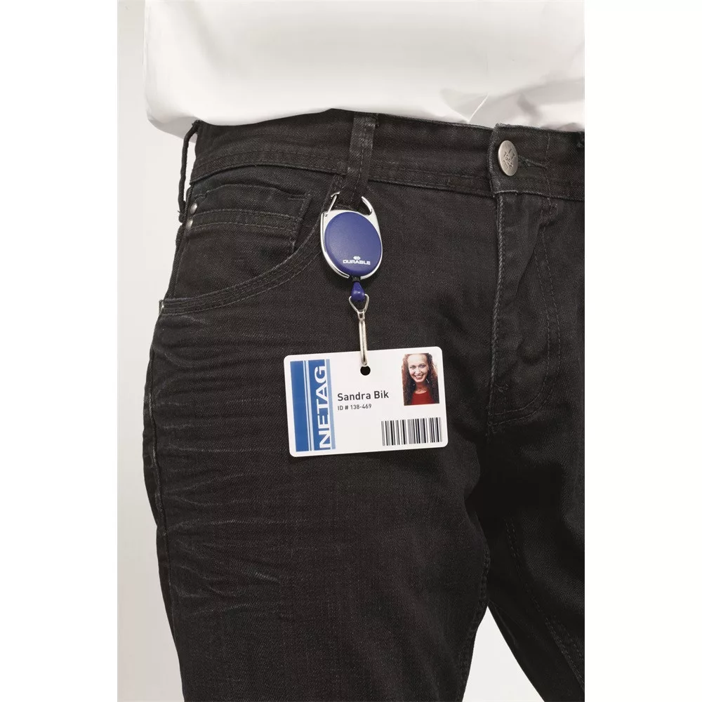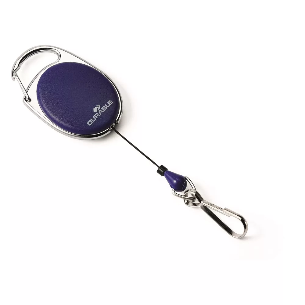 Kihúzható névjegytartó DURABLE WITH SNAP HOOK karabineres sötétkék