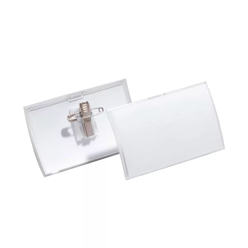 Névkitűző 90x54mm, kombi klippel, 25 db/csomag, Durable Click Fold áttetsző