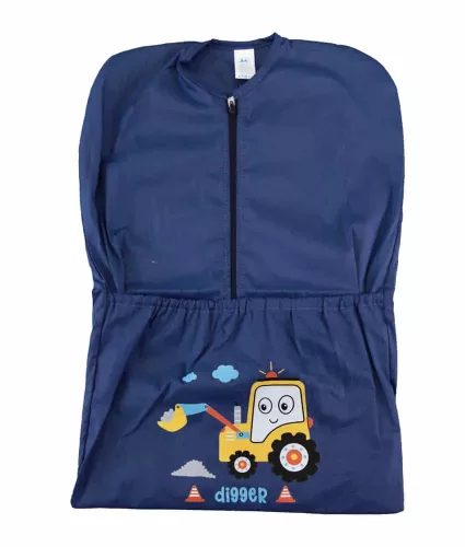 Közepesen kék színű, munkagép mintával díszített, elöl cipzáras oviszsák, melyben a gyermek minden ruhája kényelmesen elfér. A szín- és formatartó, könnyen kezelhető, jól mosható anyagból készült oviszsák kitűnő választás a hosszú óvodai napokra. A tiszta pamut anyag biztosítja a kényelmet és a tartósságot, így éveken át hűséges társa lesz a gyermekednek. A praktikus és sok óvodában, bölcsődében kötelező oviszsák minőségi magyar termék, melyben a gyermeked ruhái mindig rendben lesznek. A termék anyaga 100% pamut, I.osztályú minőség.