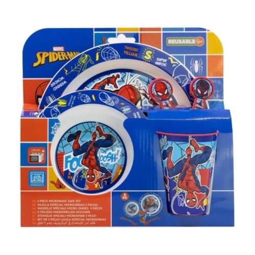 Pókember 5 részes mikrózható étkészlet (lapostányér, mélytányér, pohár, kanál, villa)