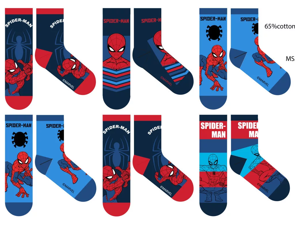 Pókember gyerek pamut normál zokni - 6 pár/csomag - 23-26