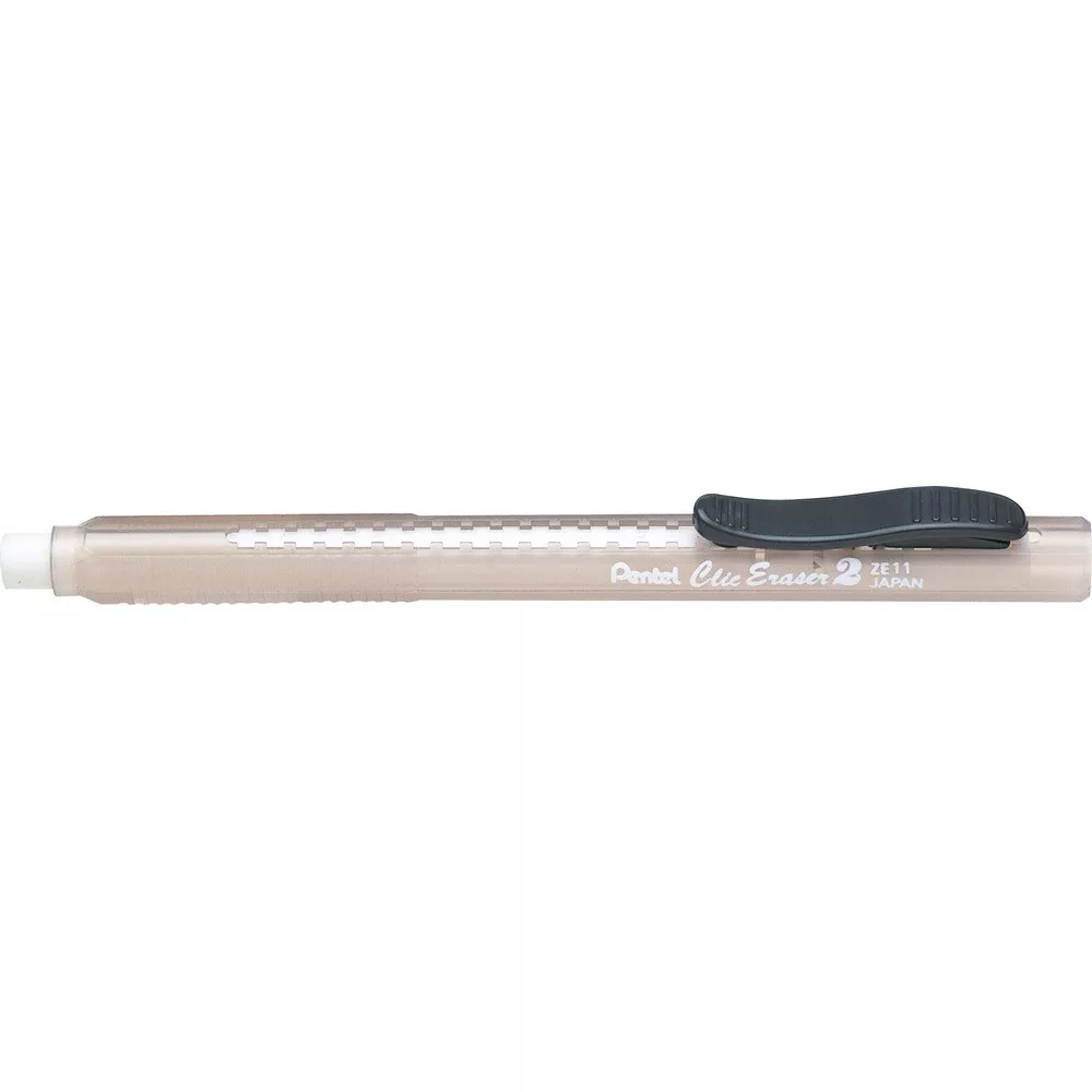 Tolóbetétes radír áttetsző, műanyag tollformájú testben. A radír műanyag klipsszel rendelkezik, melynek köszönhetően könnyen elhelyezhető. A termék négy színben kapható. Utántölthető.Katalóguskód: 27099