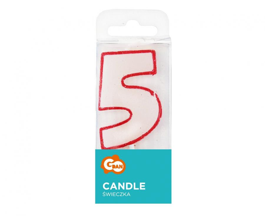 Piros körvonalas Red Outline Glitter 5-ös számgyertya, tortagyertya