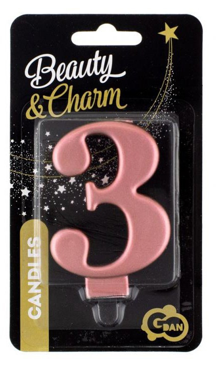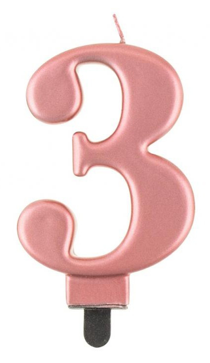 Rose Gold számgyertya, tortagyertya 3-as