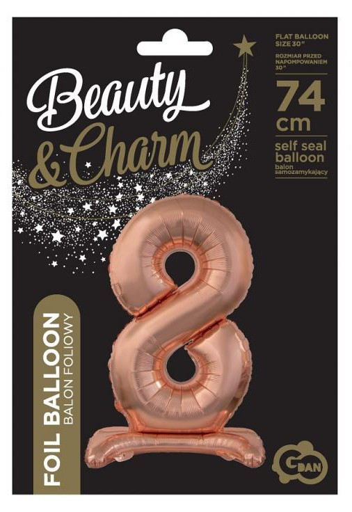 Rose Gold 8-as szám fólia lufi talppal 74 cm