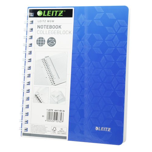 SPIRÁLFÜZET A5, 80LAP KOCKÁS LEITZ WOW KÉK