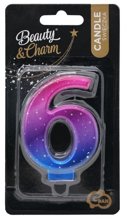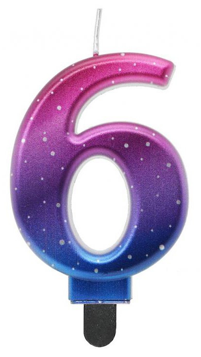 Színes 6-os Night Sky Metallic számgyertya, tortagyertya