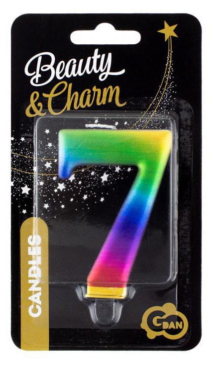 Színes 7-es Galaxy számgyertya, tortagyertya