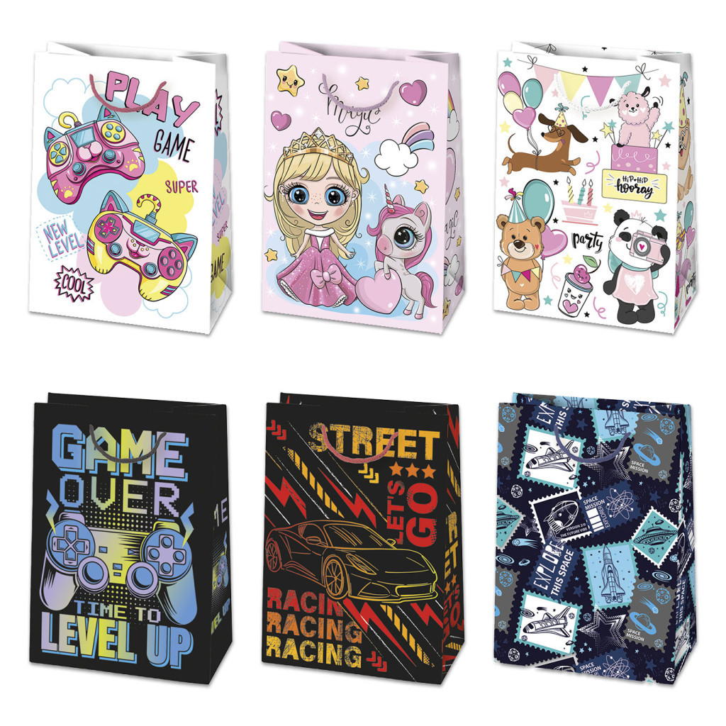 Színes Party papír ajándéktasak, ajándékzacskó 23x32x11 cm