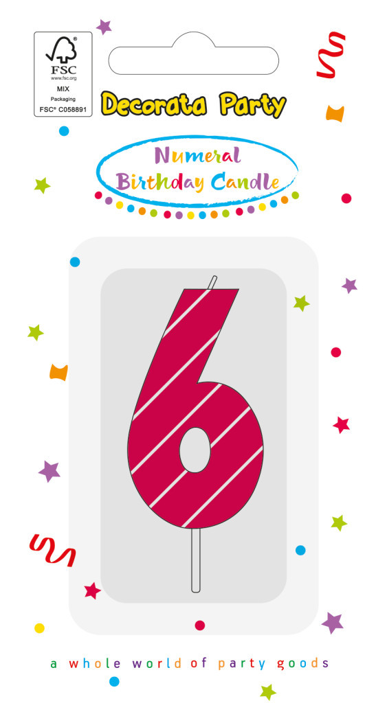 Színes 6-os tortagyertya, számgyertya