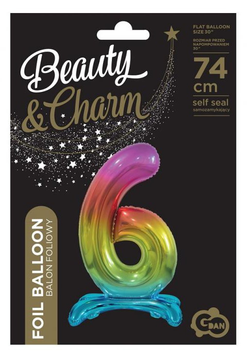 Színes Rainbow 6-os szám fólia lufi talppal 74 cm