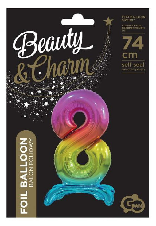 Színes Rainbow 8-as szám fólia lufi talppal 74 cm