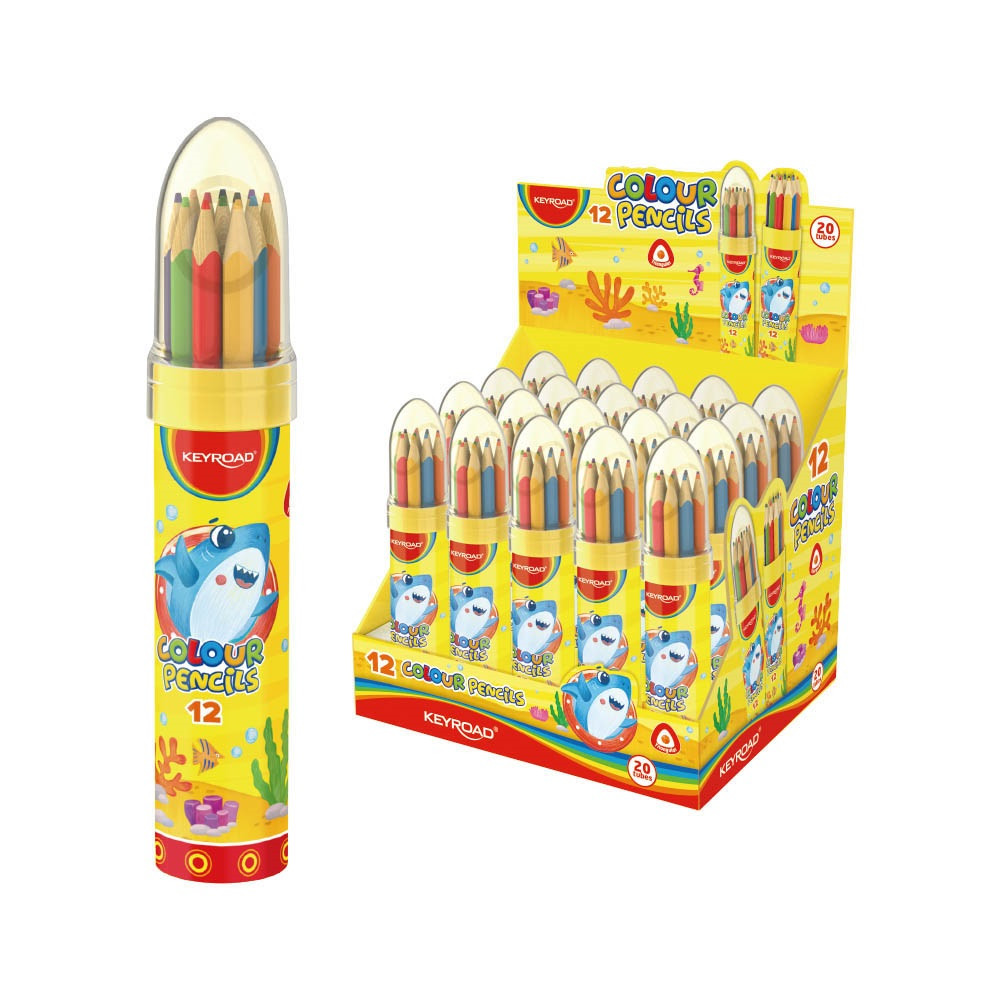 SZÍNES CERUZA KÉSZLET HÁROMSZÖGLETŰ, RAKÉTA PALACKBAN 12DB/BLISZTER KEYROAD VEGYES SZÍNEK