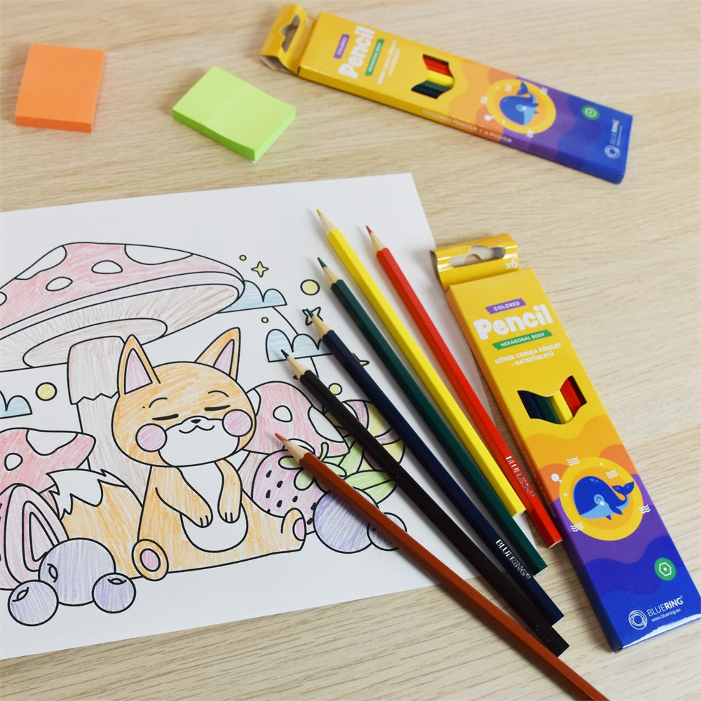 Színes ceruza készlet, hatszögletű Bluering® 6 klf. szín,
