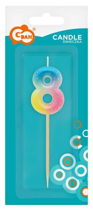 Színes mini 8-as Pastel Ombre számgyertya, tortagyertya