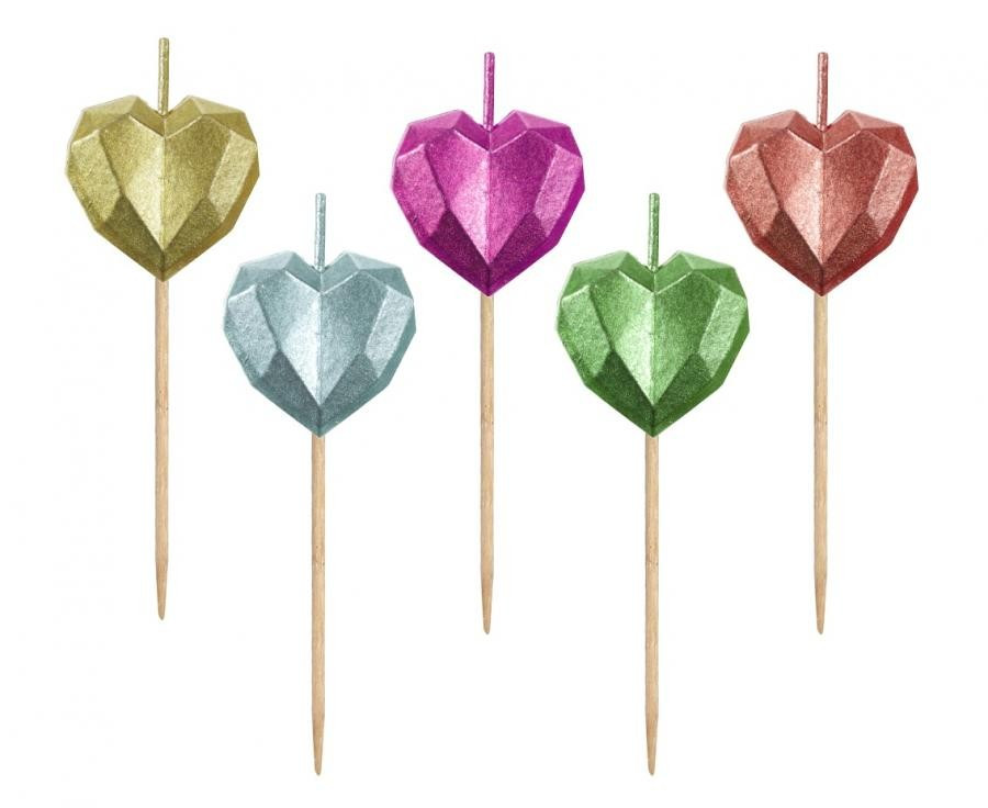 Szív Metallic Heart tortagyertya, gyertya szett 5 db-os