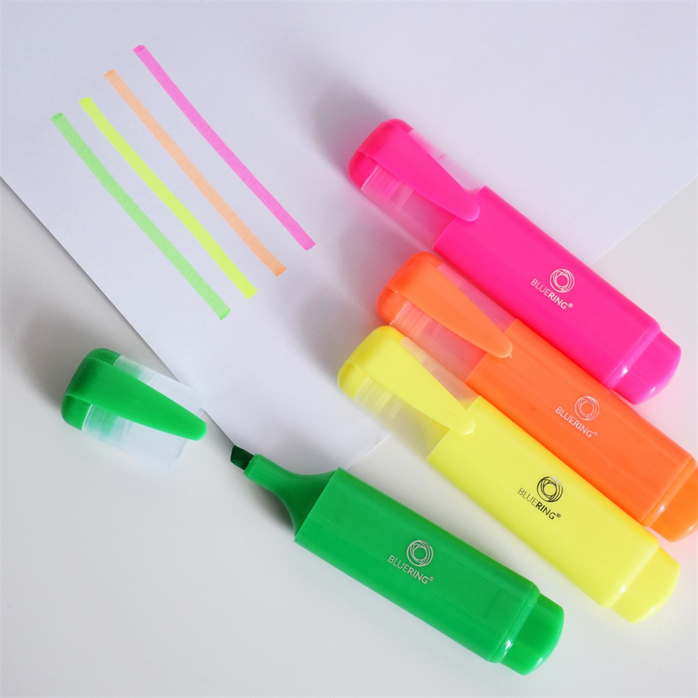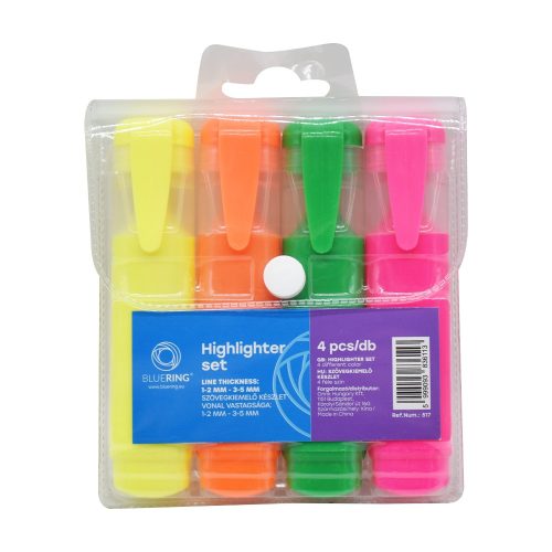 Szövegkiemelő lapos testű készlet, Bluering®, 4 klf. szín
