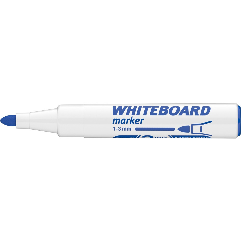 Fehér táblára való írásra, rajzolásra alkalmas marker. Az írás szárazon letörölhető. Kerekített csúcs. Vonalvastagság: 3 mm. 25DB/DOBOZ Katalóguskód: 17480