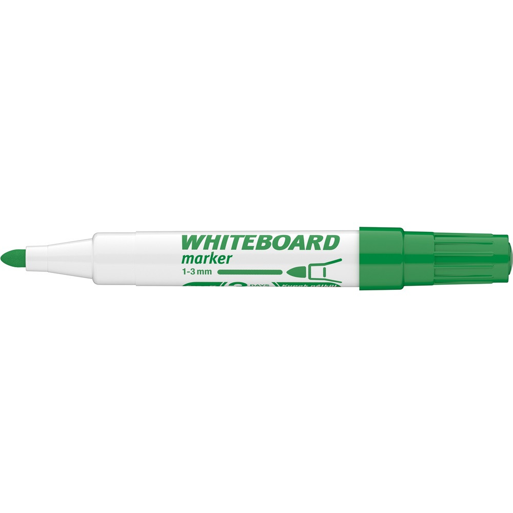 Fehér táblára való írásra, rajzolásra alkalmas marker. Az írás szárazon letörölhető. Kerekített csúcs. Vonalvastagság: 3 mm. 25DB/DOBOZ Katalóguskód: 17482