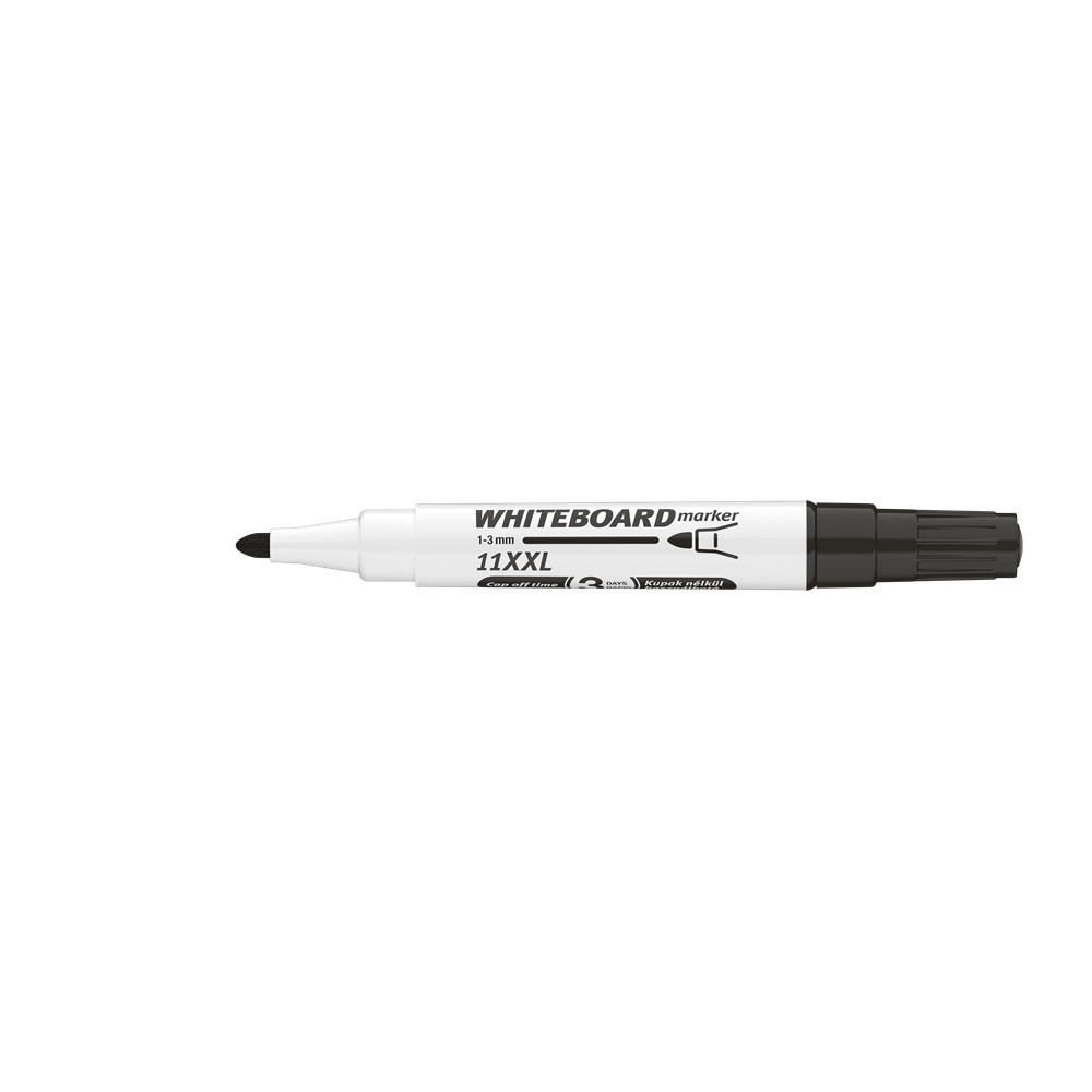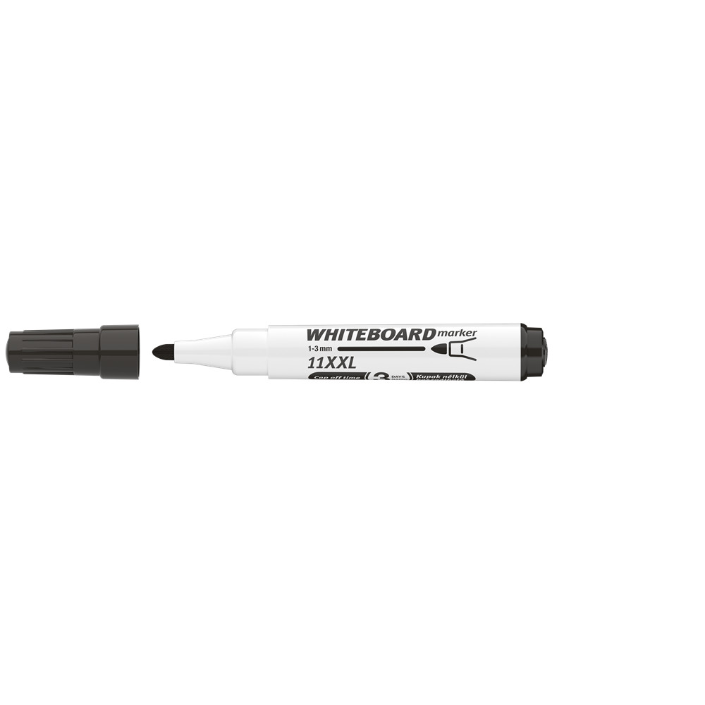 Fehér táblára való írásra, rajzolásra alkalmas marker."Cap-off" festékkel töltve, ezért néhány napig kupak nélkül sem szárad be. Az írás szárazon letörölhető. Megnövelt élettartam a nagyobb méretű testnek köszönhetően. Kerekített csúccsal .. Vonalvastagság: 3 mm. 10DB/DOBOZ Katalóguskód: 20189