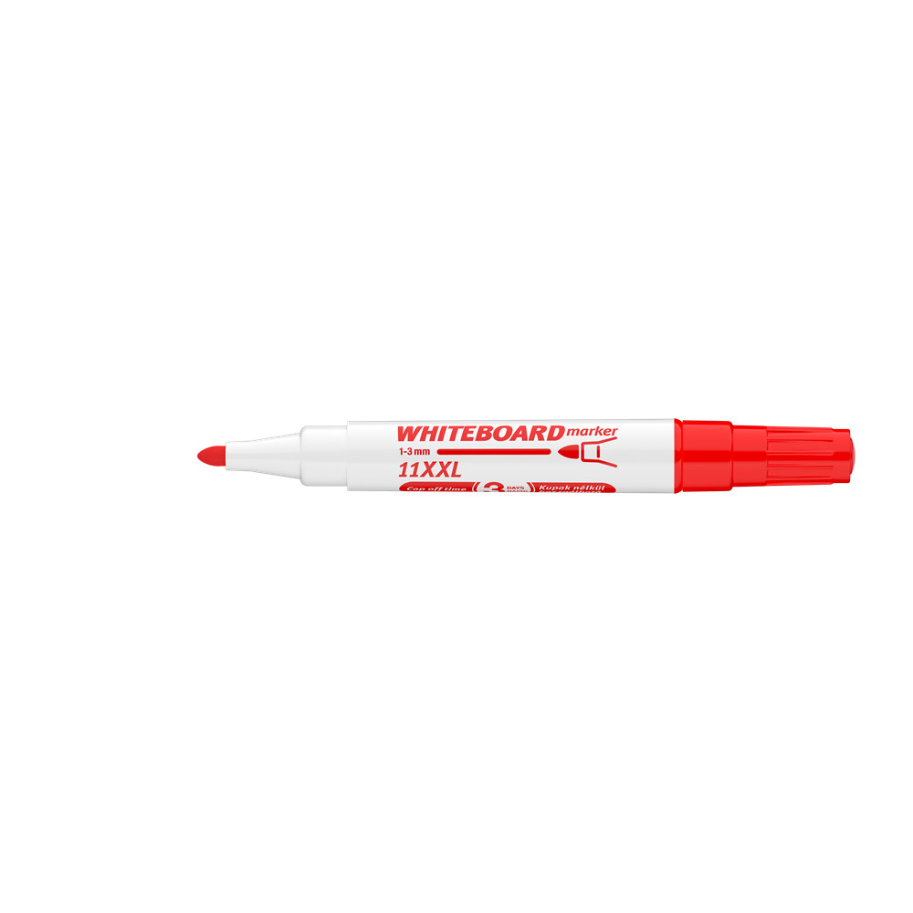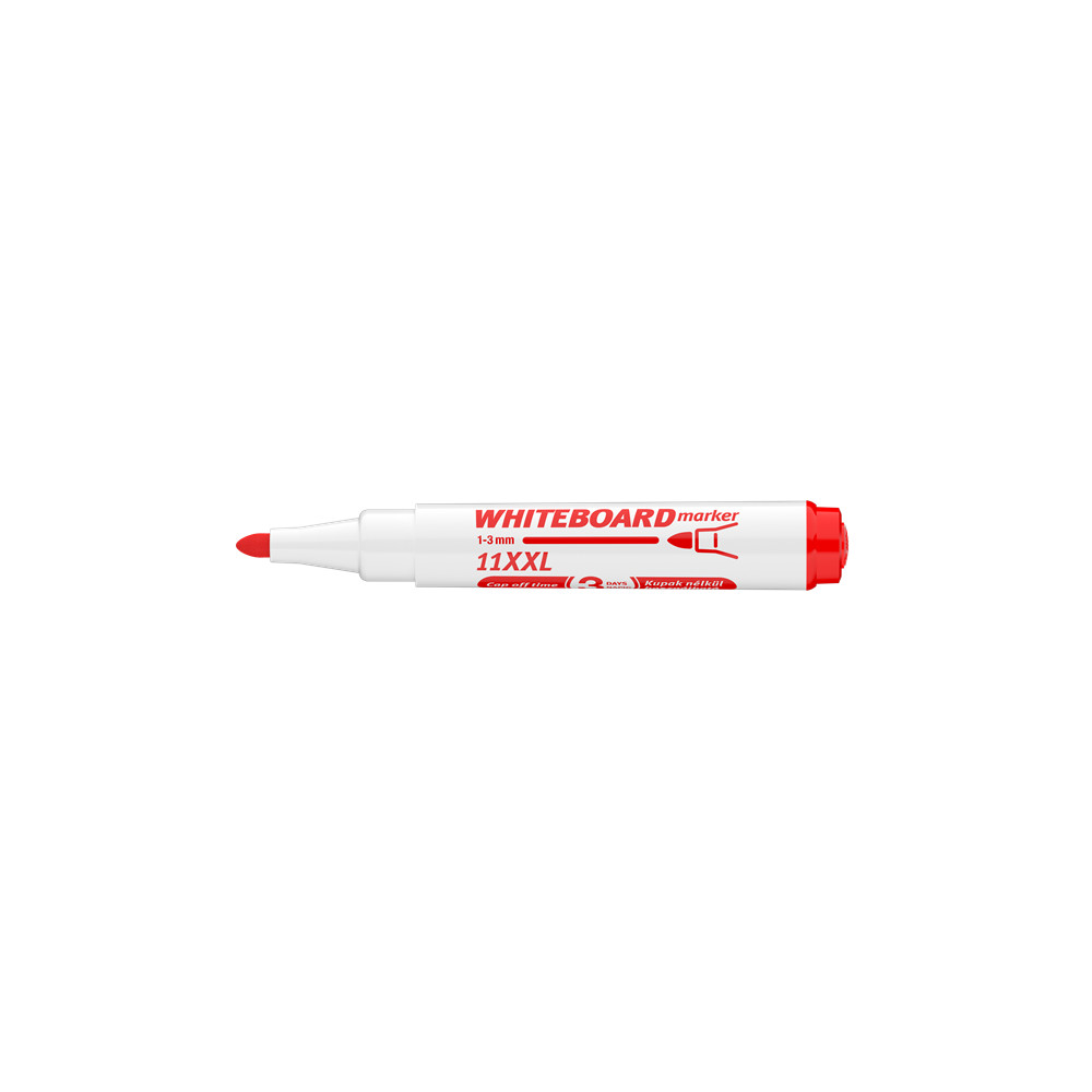 Fehér táblára való írásra, rajzolásra alkalmas marker."Cap-off" festékkel töltve, ezért néhány napig kupak nélkül sem szárad be. Az írás szárazon letörölhető. Megnövelt élettartam a nagyobb méretű testnek köszönhetően. Kerekített csúccsal .. Vonalvastagság: 3 mm. 10DB/DOBOZ Katalóguskód: 20191