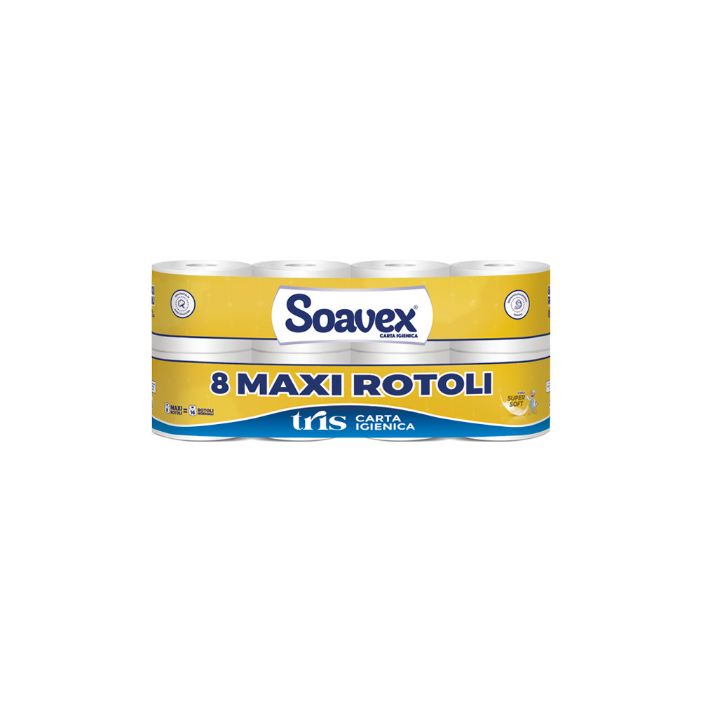 TOALETTPAPÍR 3 RÉTEGŰ KISTEKERCSES 100% CELLULÓZ 155 LAP/17 M/TEKERCS 8 TEKERCS/CSOMAG SOAVEX MAXI ROTOLI_PAPERDI